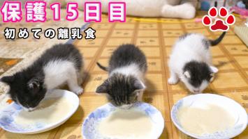 【保護15日目】初めての離乳食。美味しいと食べ続けた子猫るい【瀬戸の3姉妹日記】