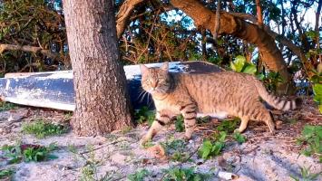 浜辺で夕陽を見ていた野良猫に近づいてみたら【感動猫動画】