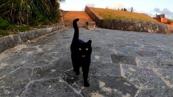 夕方の公園で黒猫がモフられに歩いてきた【感動猫動画】