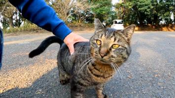 山道で出会った野良猫、恐る恐る近づいてきて撫でられにきた【感動猫動画】