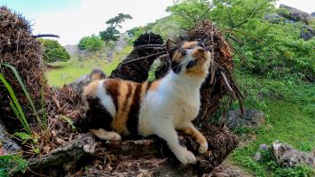 石垣の下で寝ていた野良猫を撫でると喜んで足元に擦り寄ってきた【感動猫動画】