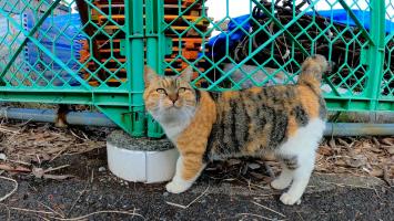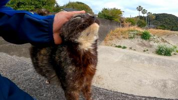 漁港に行くとハートマークの三毛猫ちゃんが撫でられに出てきた