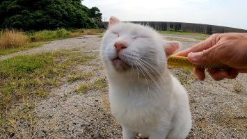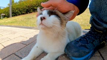草むらで寝ていた白猫ちゃんがモフられに出てきたので「ねこじゃすり」でナデナデした【感動猫動画】