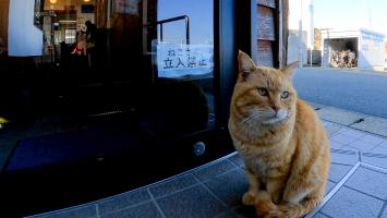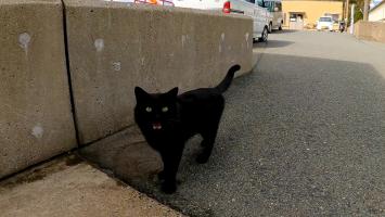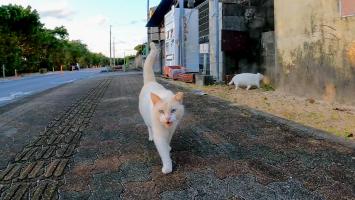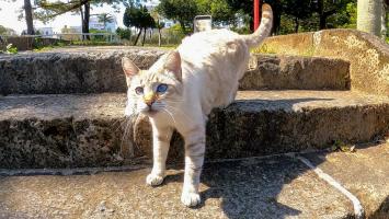 猫島で道路脇に座っていた猫がかわい過ぎる