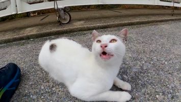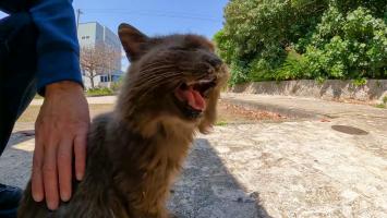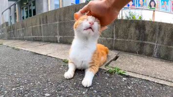 腰トントンすると不思議な表情をする野良猫がカワイイ【感動猫動画】