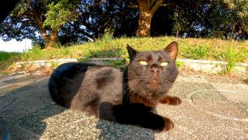 バイクに寄ってきた黒猫をナデナデする【感動猫動画】