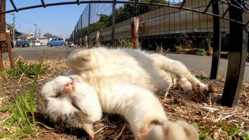 道路脇の広場にいる野良猫達が可愛過ぎる【感動猫動画】