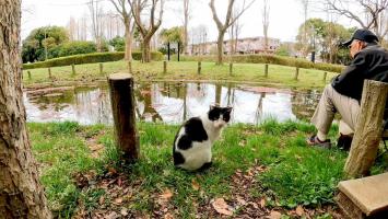 おじさんと一緒に釣りをする野良猫【感動猫動画】