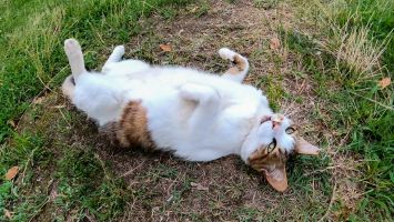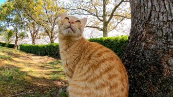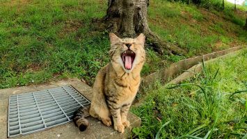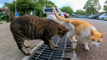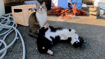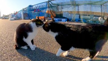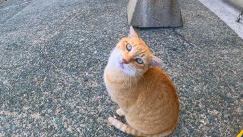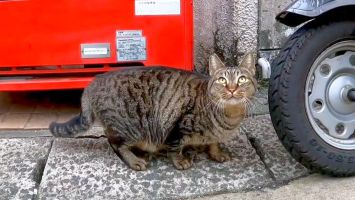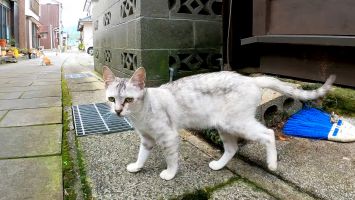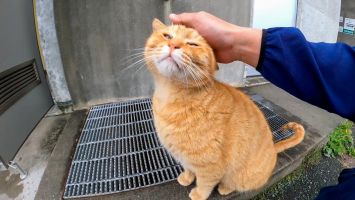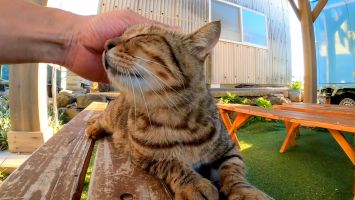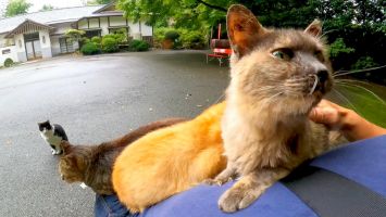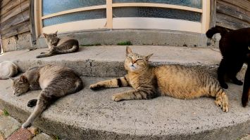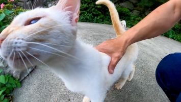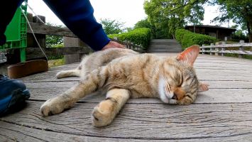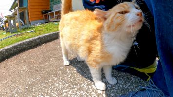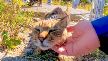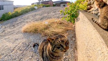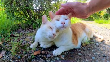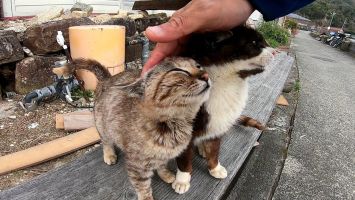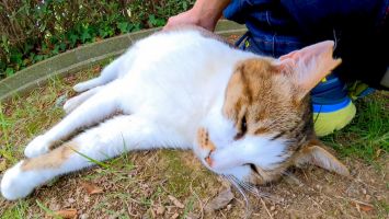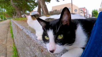 坂道の途中で寝ていた猫をナデナデすると別の猫も撫でられにきた