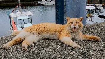 港で人相の悪い猫がこっちを睨んでいたのでケンカを売ってくるかと思ったら意外にも超人懐っこい猫だった【感動猫動画】