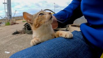 漁港に子猫がいたのでナデナデすると懐いて擦り寄ってきた【感動猫動画】