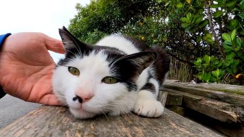 漁港に野良猫が座っていたのでナデナデすると猫は喜んで擦り寄ってきた【感動猫動画】