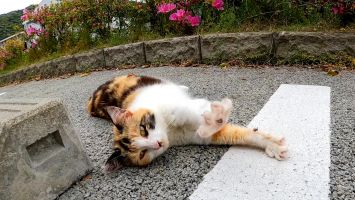 お城の門番の三毛猫ちゃん、お庭でサボっていました【感動猫動画】