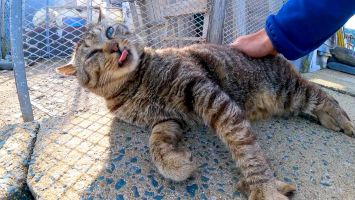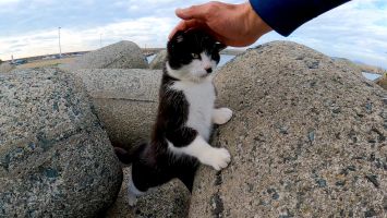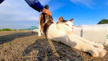 防波堤の猫ちゃん撫でると擦り寄ってきてカワイイ【感動猫動画】