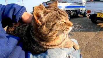 猫島の船着場付近にハチワレ猫がいたので撫でると茶トラ猫もやって来た【感動猫動画】