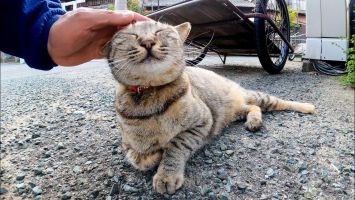 路地裏で寝ていた猫を撫でると喜んで隣に座ってきた【感動猫動画】