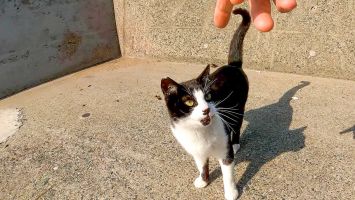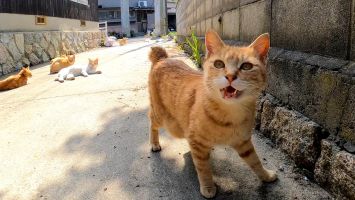 漁港の倉庫裏では野良猫の口喧嘩が始まった【感動猫動画】