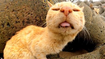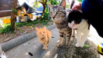 海沿いの道に行くと草むらで休んでいた猫が一斉に寄ってきて愉しい【感動猫動画】