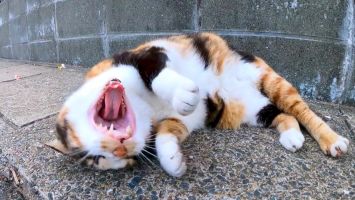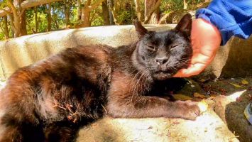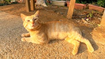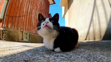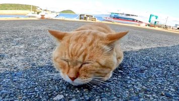 海辺の神社前に猫が寝ていたので隣に座ってナデナデしてきた【感動猫動画】