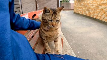 細い路地裏で出会った猫ちゃん、ナデナデすると喜んで膝の上に乗ってきた