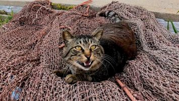 網の上で寝ていた野良猫は声がデカい【感動猫動画】