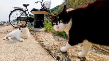 遠くにライバル猫、黒白猫、白黒猫に緊張が走る【感動猫動画】