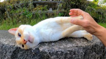塀の上の猫を撫でる【感動猫動画】