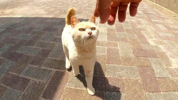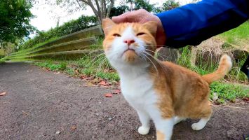 池の側にいた白猫ちゃん、モフられに出てきた【感動猫動画】