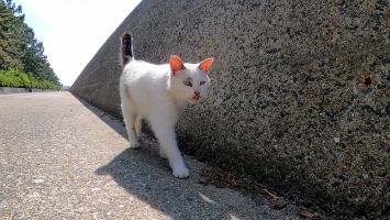 海辺の野良猫の散歩に付いていってみた【感動猫動画】