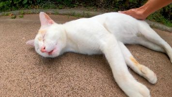 撫でるのを止めるとすぐに催促してくる野良猫が可愛過ぎる【感動猫動画】