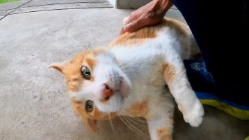 薄三毛猫ちゃんがモフられにやって来た【感動猫動画】