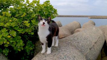 防波堤を歩く猫「YouTubeの人連れてきたよ」