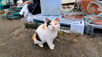 夕方の漁港に行ったらハートマークの三毛猫ちゃんがモフられにきた【感動猫動画】