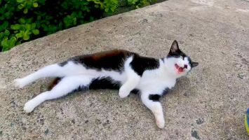 坂道の途中で寝ていた猫がかわい過ぎる