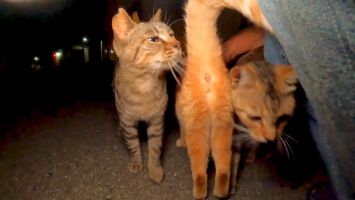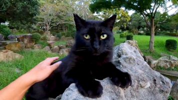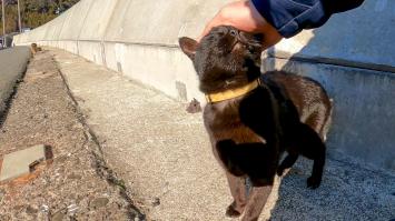 防波堤に黒猫がいたので撫でると他の猫も寄ってきた【感動猫動画】