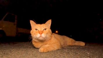 夜の港にいた茶トラ猫を撫でると他の猫も集まってきた【感動猫動画】