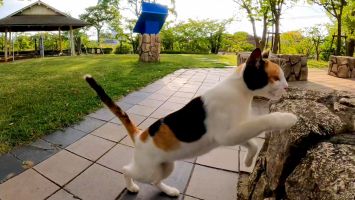土俵の三毛猫ちゃんがモフられに来た【感動猫動画】