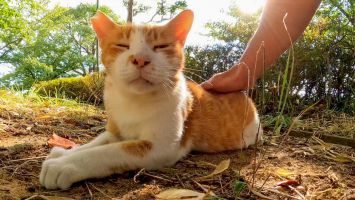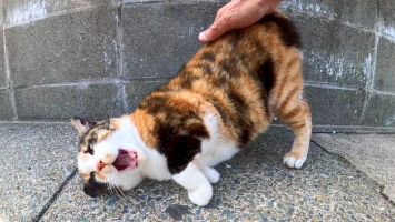 道の真ん中にいた猫を撫でると喜んで膝の上に乗ってきた【感動猫動画】