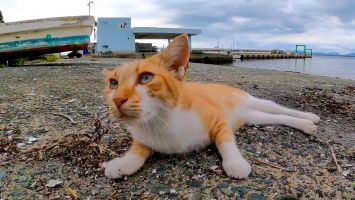 漁港の舟の上にいた野良猫がモフられに下りてきた【感動猫動画】