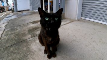 閉店後の商店街に黒猫がいたので撫でると喜んで膝の上に乗ってきた【感動猫動画】