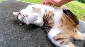 ハイキングコースで出会ったパステル三毛猫ちゃん、撫でると喜んでゴロンゴロン転がった【感動猫動画】