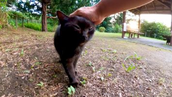 夕方の公園で休憩所に行ったら野良猫が駆け寄ってきてカワイイ【感動猫動画】