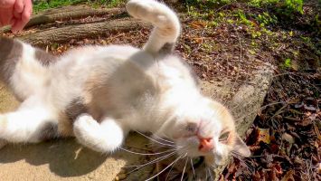 広場にいた黒猫を撫でると白猫も撫でられにきた【感動猫動画】