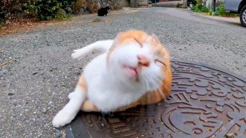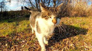 丘の上で寝ていた野良猫、近づくと起きて擦り寄ってきてカワイイ【感動猫動画】