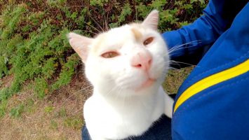 防波堤に座ると猫が近くにやってきて膝の上に乗ってきた【感動猫動画】