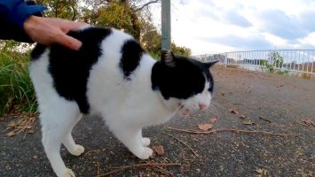 公園でタヌキみたいな猫がモフられにきた【感動猫動画】