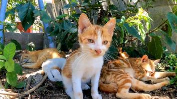 木陰で休む子猫たち