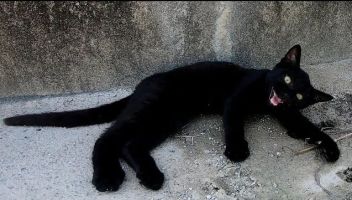 日陰で寝ていた黒猫に近づいたら起きてきて猛烈に甘えてきた