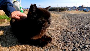 猫島で道端にいた黒猫を撫でるとゴロゴロ喜んでカワイイ【感動猫動画】
