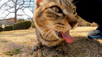 撫でるとペロペロする猫、堪らず草を舐める【感動猫動画】